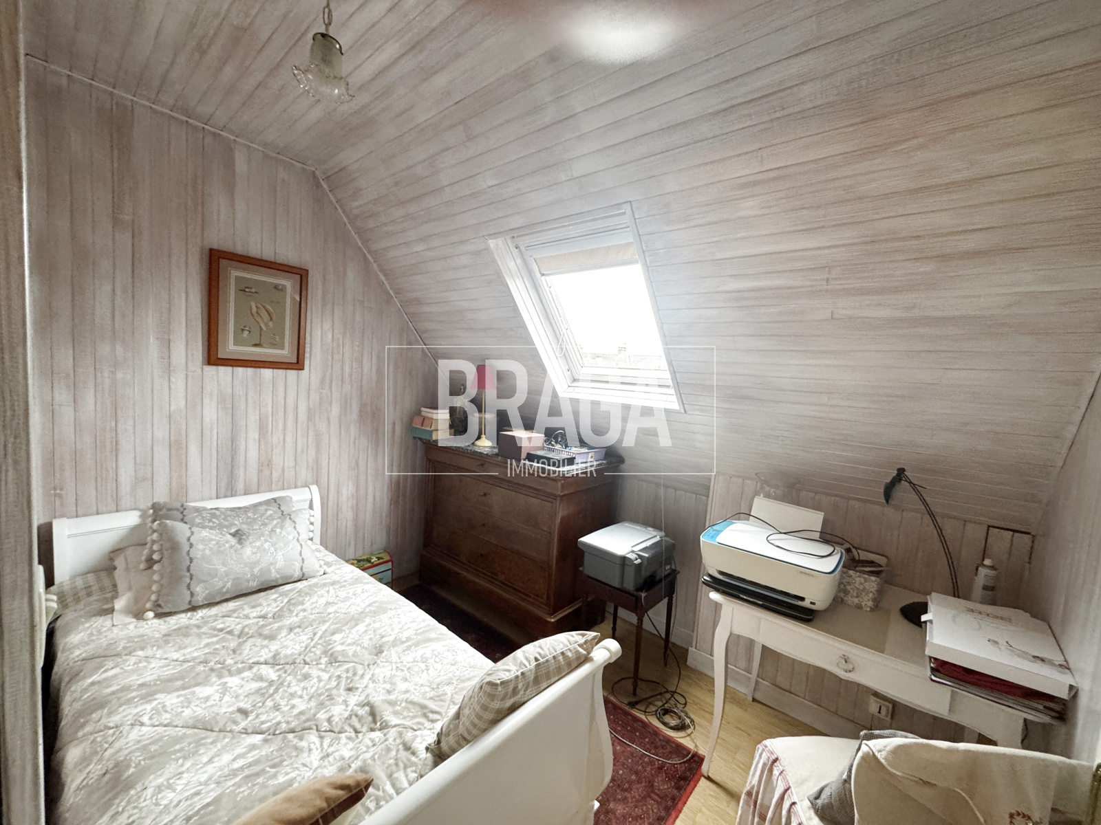 Une vaste entrée avec vestiaire, une buanderie, une cuisine aménagée et équipée, un beau salon-séjour très lumineux, une salle de bains, trois chambres avec rangements intégrés et un bureau. Comble aménageable.